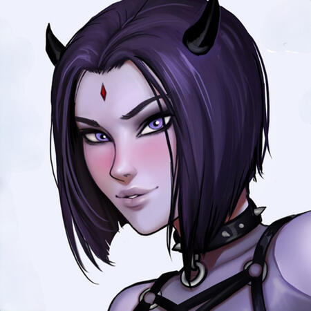 Es una mujer poco expresiva, simplemente anda con un rostro serio, eso no quiere decir que no sienta emociones. Si expresa algo con alguien es porque algo hizo con la demonia para que se abriera así.La gema en su frente es desde nacimiento.El cabello morado es natural.Sus uñas sonrealmente afiladas, tanto que podría convertirlas en garras si ella quiere.Altura 1.70, aunque de alguna manera muchos humanos son más altos que ella.Es de leer algún libro (magia oscura mayormente) en sus ratos libres.